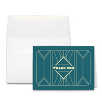 These Art Deco Thank You Cards are great for sending thanks to clients, customers, or colleagues. These thank you note cards are made from a 65lb cover and are scored for easy folding. We also leave the thank you cards unfolded so you can run them through your printer for bulk...